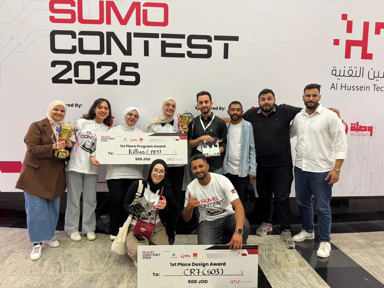 Hijjawi Faculty for Engineering Technology at Yarmouk University achieved a new national milestone in the Fourth National SUMO Robotics Contest 2025, hosted by Al-Hussein Technical University with the participation of more than 230 teams representing various Jordanian universities.