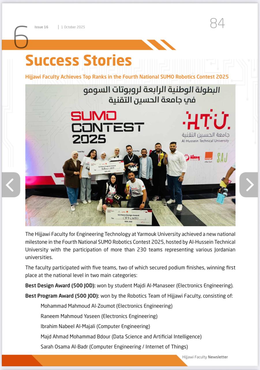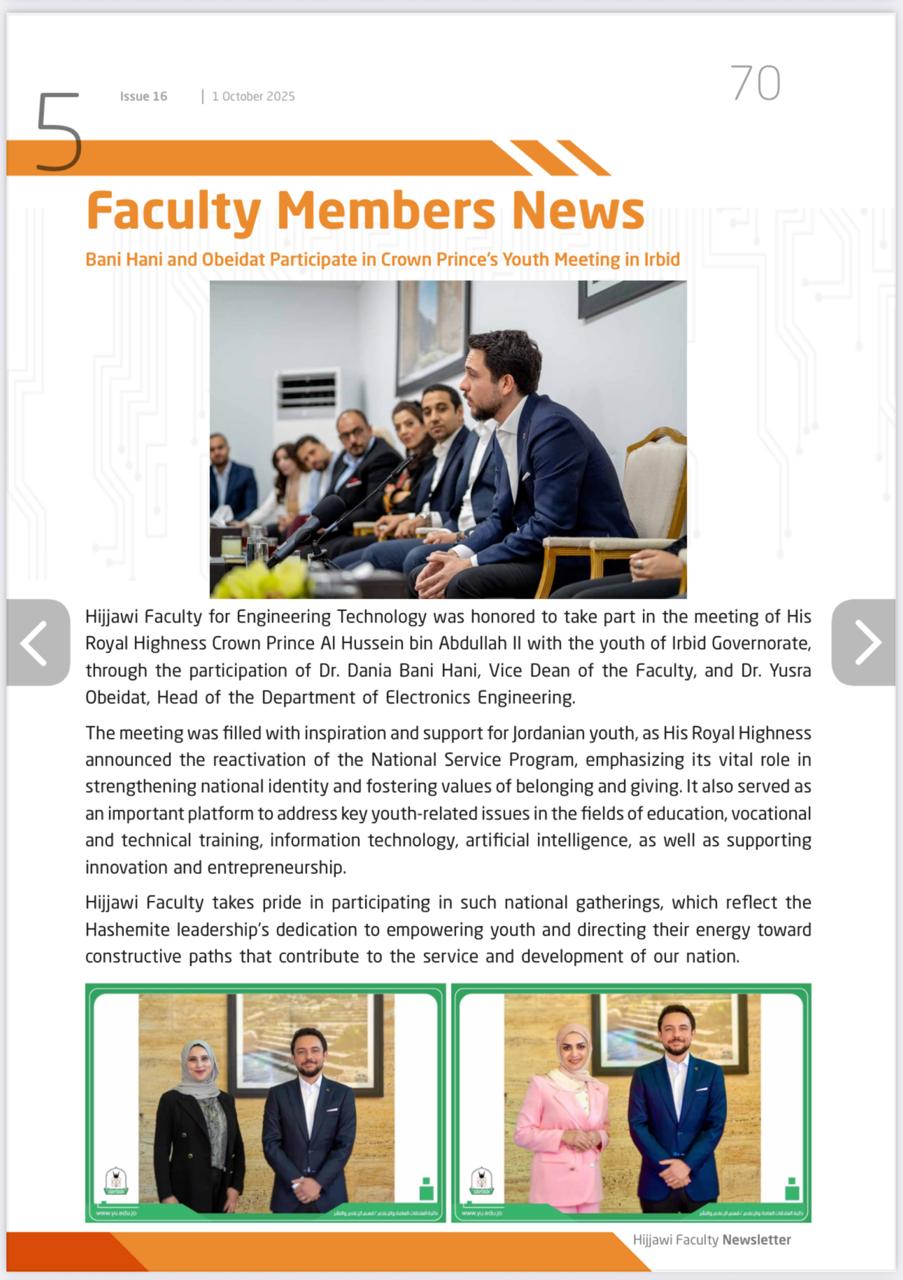 The Hijjawi Faculty for Engineering Technology at Yarmouk University has published the 16th edition of its periodic electronic newsletter in English.